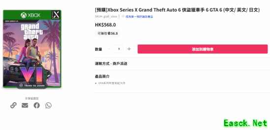 今日有网友发现,香港知名线上商店the club的《GTA6》实体版页面标注了售价,568港元,相当于人民币495元。
