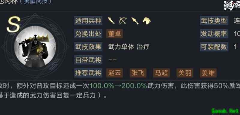 酒池肉林可增强于禁的持续作战与生存能力,若侧重爆发输出,则可替换为贯颐奋戟以提升攻击性能。