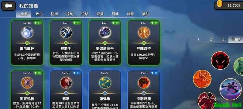 核心玩法依赖反伤与吸血机制,反甲造成的伤害可触发吸血效果,反伤越高回复越多。搭配一个通用的受击增加生命上限技能,有助于提升生存能力,避免被秒杀。另一个回血技能并非必需,可根据情况随意选择,整体影响较小。