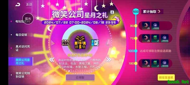新活动建议购买满50元后即可停止(适用于全满模组的玩家)。紫箱、蓝箱、霓虹币和月币都可兑换完,其余道具若不缺模组的话,性价比不如直接购买,不建议多买。最新一期蓝箱可兑换拍手器,该道具能提升节奏子弹的发射速度。