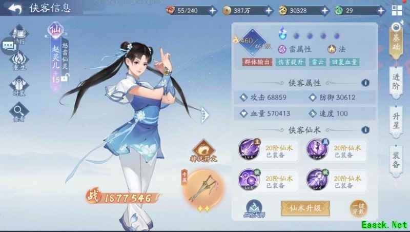 当然,前面提到的侠客需具备四项高条件,仅星高等级是不够的,还需仙术等级高。