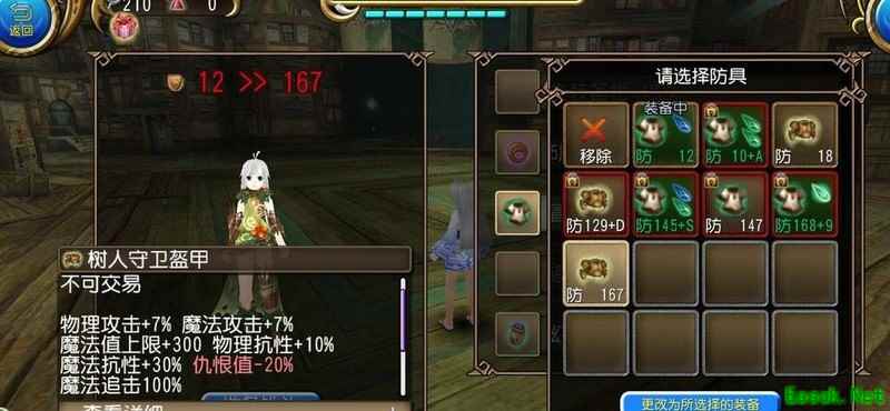 树人守卫盔甲,降低仇恨20%,提升双抗与300点法力。