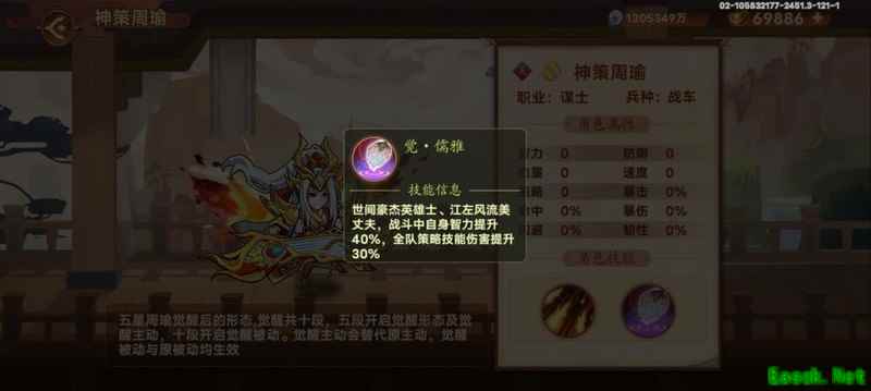 周瑜智力提升40%,策略伤害增加60%。