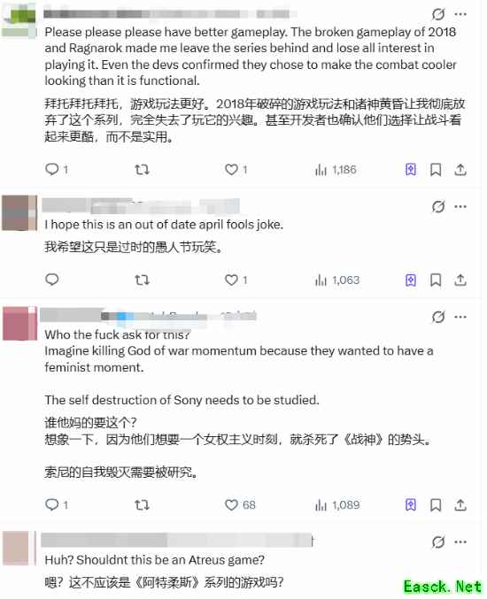 “谁特么要求出这个了?为了搞‘女权时刻’而亲手毁掉《战神》的势头,索尼的自我毁灭过程值得研究。”