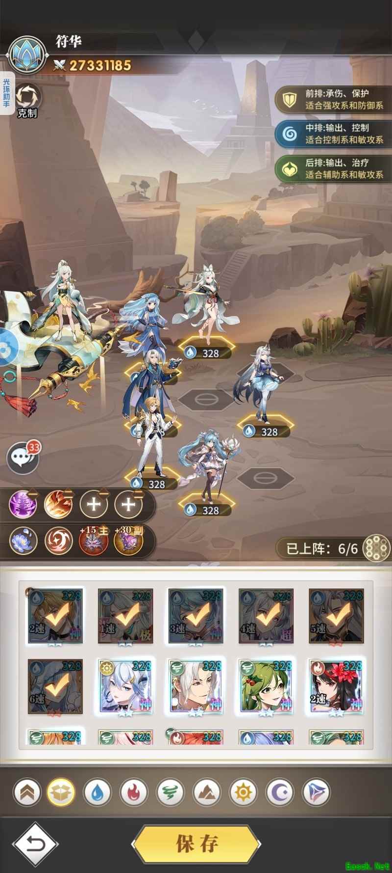 第三队(主要用于爬塔,PVP靠前两队):水冰儿、小白、刚子、泠泠、海三(有条件可以上修三),老虎。