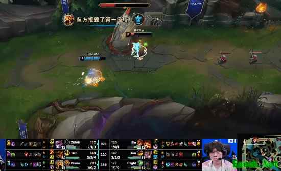 整局比赛,Bin的纳尔几乎毫无存在感,打团进场就被融,最终打出1-7的惨淡战绩。而ZUIAN的薇恩则屡次在团战中切死后排,成为TES取胜的关键。