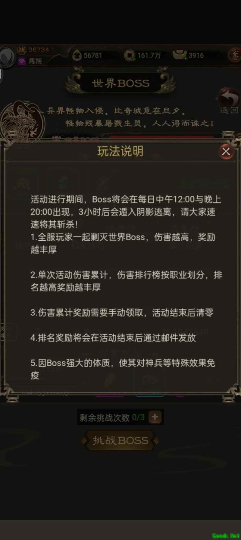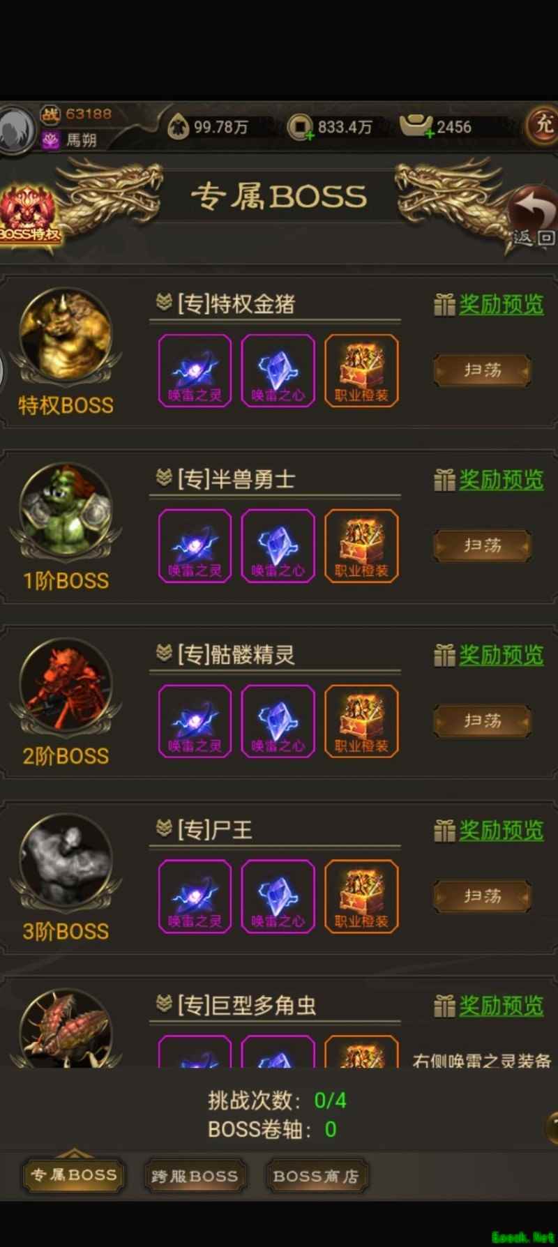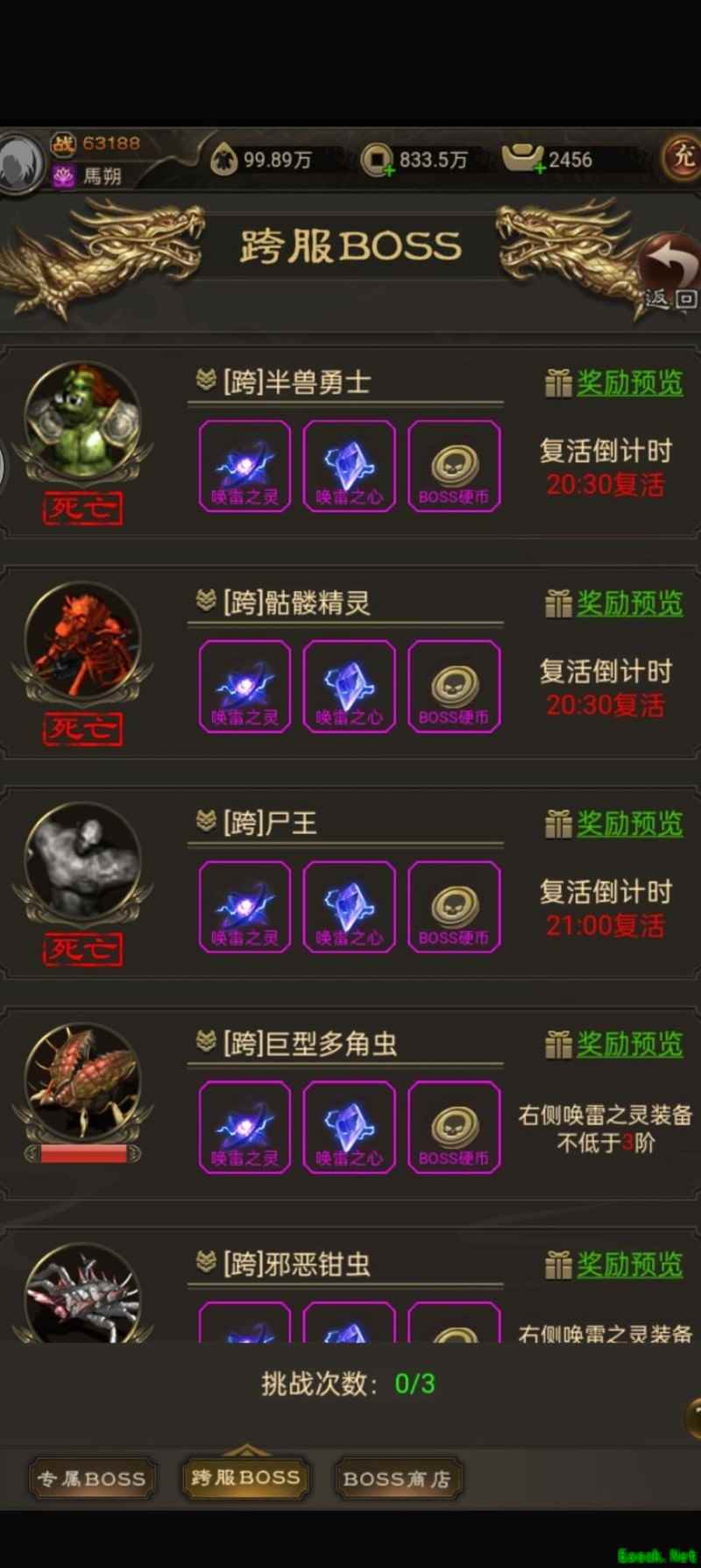 清晨六点便有人抢Boss,能打总比打不到强,刷新时间有30分钟和60分钟两种。
