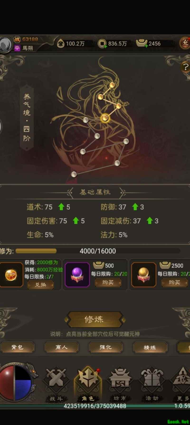 升级材料主要通过参与活动掉落获取,但提升境界需依赖内功修炼等级。修炼过程中,最大难点在于进阶时需要元神觉醒丹,而这类道具基本无法通过活动Boss获得,只能用元宝购买。首次升级就需要10颗,因此每天节省200元宝用于购置元神觉醒丹,是性价比最高的选择。