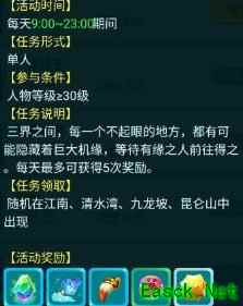 每日地图会随机刷新仙缘,完成指定任务有机会获得珍贵奖励。世界频道常有玩家分享刷新位置,但仙缘出现时间极短,一旦发现务必立即前往,切勿错失良机。