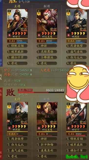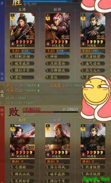周泰为副将,搭配战法白马义从与盛气凌敌。