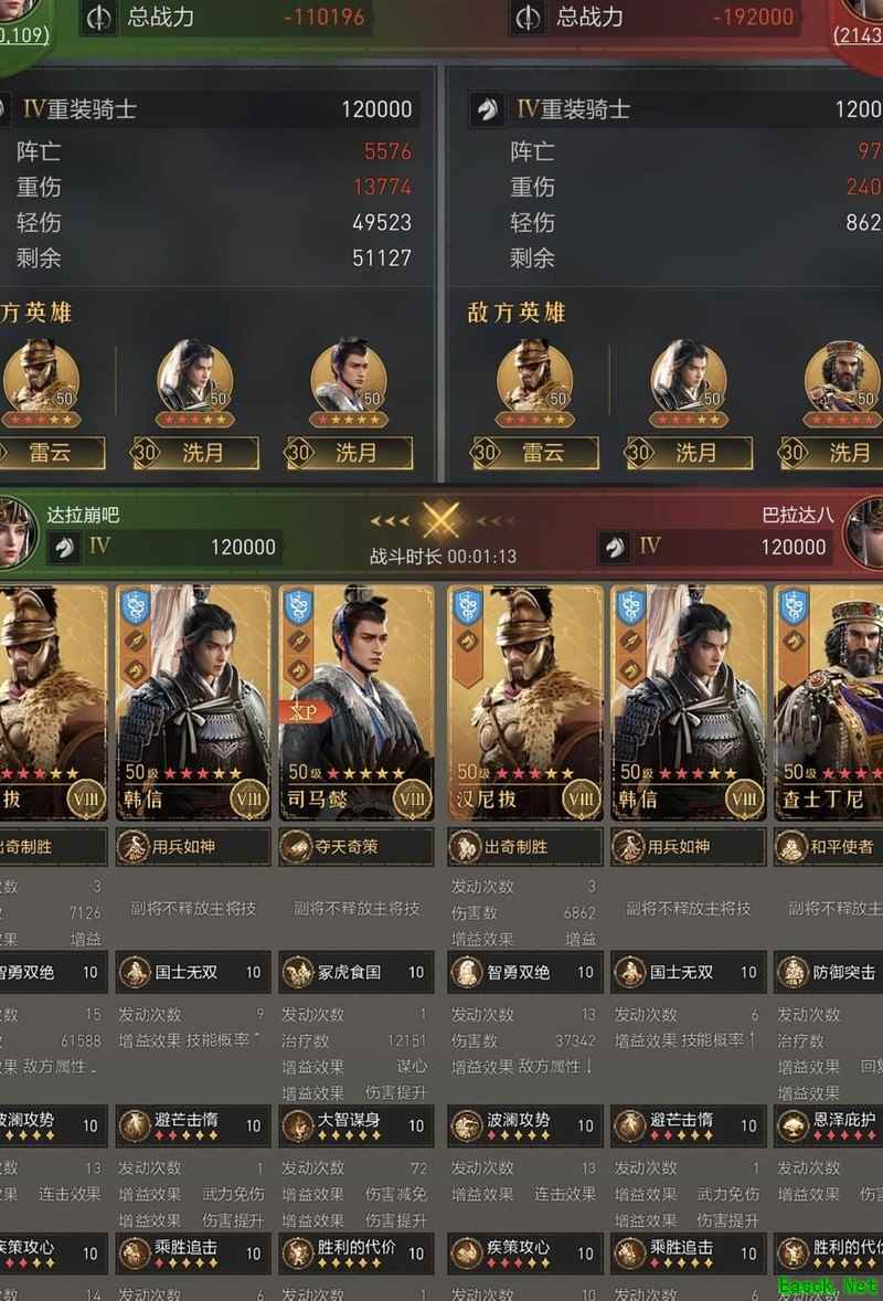 我们尝试了新的技能搭配,如韩信使用无尽狂潮,司马懿主加守备并搭配惊世疾霆,实战中表现出乎意料地强势,战报显示整体强度非常突出。
