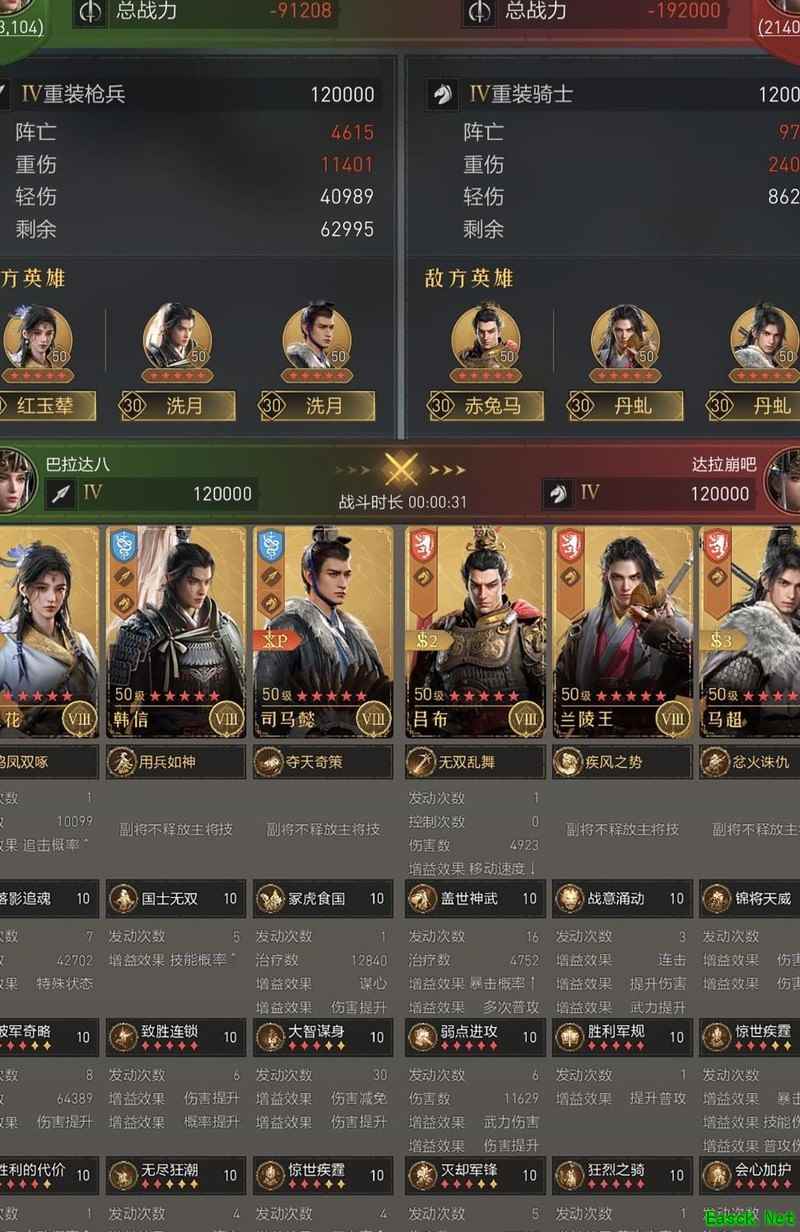 战报显示,樊梨花率领枪兵仍具显著优势,改用无尽狂潮取代波澜攻势亦成效显著,对阵高输出无双骑仅用31秒即迅速取胜。