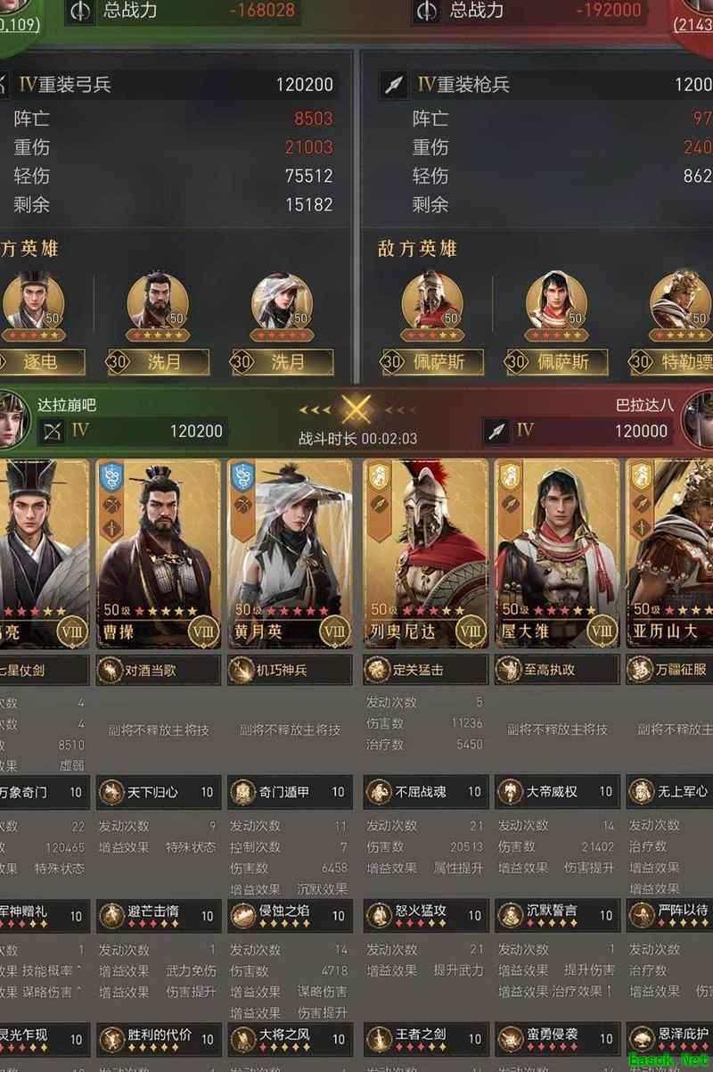 战报分析:舍弃黄月英的沉默效果,转型为专注输出的法术弓兵阵容,整体输出、防御与回复能力均显著提升,但在对抗主动技能阵容时,压制力较以往有所下降。