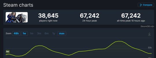 SteamDB显示,《识质存在》Steam同时在线峰值进一步突破,从之前的首日5万增长到了6.7万,逼近7万人
