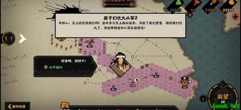 选择援助二子后,后续有较低几率触发其参军事件,从而解锁对应成就(二者择一)。