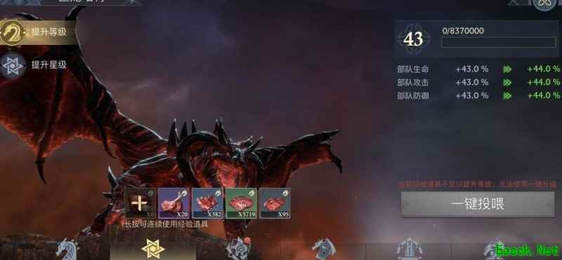 提升巨龙等级需大量兽肉,不仅可增强部队的攻击、防御与生命属性,还能解锁技能及巨龙幻影等强力功能。掌握更多资源者将大幅领先,强者借此进一步扩大优势。