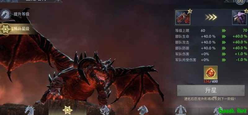 提升巨龙星级离不开龙焰宝珠,需积攒一定数量方可进阶。星级提高后,不仅属性全面增强,等级上限、部队攻击力、防御力、生命值以及整体伤害输出与承受能力均获得显著加成。该增益作用于全军整体,并非仅限弓兵、步兵或骑兵单一兵种,能有效提升整体作战实力,资源投入回报可观,性价比十分出色,是强化军队不可或缺的关键途径。