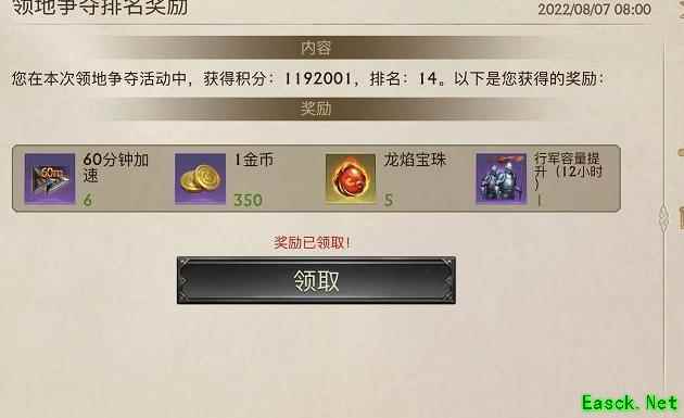 参与领地争夺活动并提升排名可获得龙焰宝珠奖励。建议密切关注活动开启时间,及时出征拆毁敌方塔防、击杀对手。提前培养兵力、派遣强力英雄参战,并参考以往推荐的阵容搭配,优化战术策略,以在活动中取得最佳表现和更高排名。