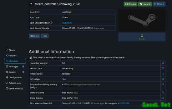 据硬件领域消息人士Brad Lynch分享,根据SteamDB追踪的数据,Valve今早突然在Steam上传了一个神秘的视频。从标题来看,视频内容大概率是“Steam手柄的开箱”。