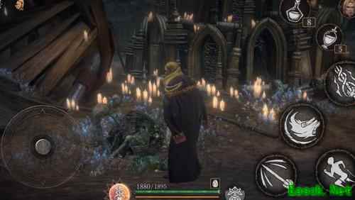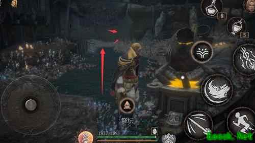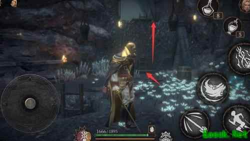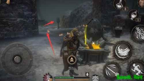 沿梯返回,存档与否皆可。直行过祭坛,穿过前方小木门即可继续前行。
