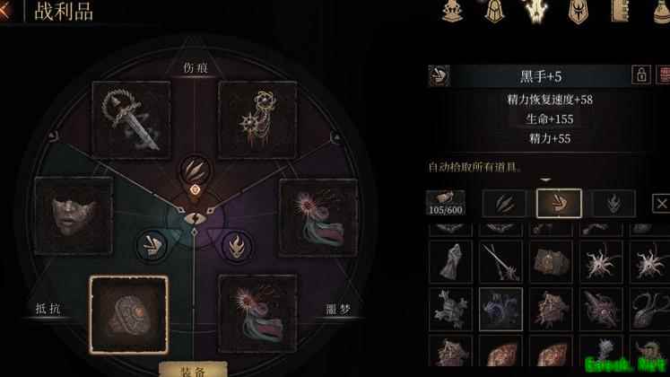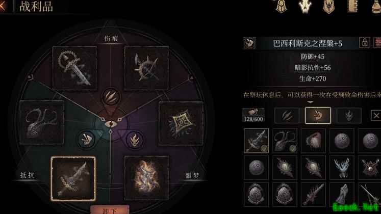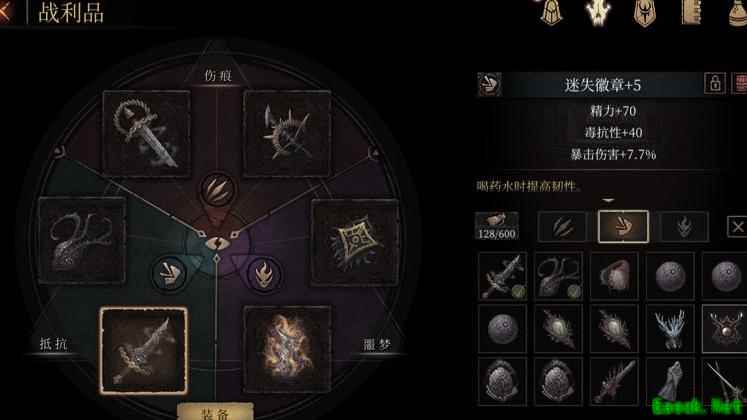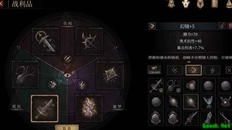 在第四章从掘墓人处获得梅洛斯瓶,可通过凝识之蜜与珊瑚虫骨进行强化,最多可灌注九次。完成五次灌注后可解锁第二结局。此物一旦装备便无法卸下,堪称噩梦级的钉子户。