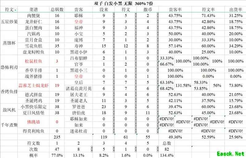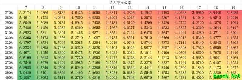 下表显示更新后的5火真实贵客率及符文效率,其中符文效率按200份、撒币比例各半计算所得,仅为参考数值。