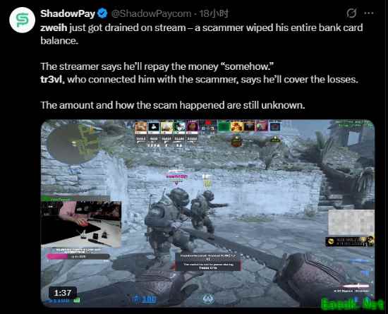 近日,《反恐精英2》俄罗斯职业选手zweih遭遇诈骗,银行账户内所有资金被洗劫一空。