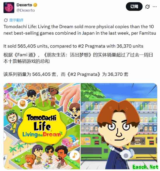 据Fami通公布的日本地区最新一周游戏实体销量数据,任天堂新作《朋友收集:梦想生活》表现堪称现象级。