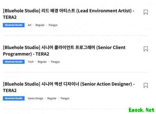 媒体发现《绝地求生》母公司Krafton旗下工作室蓝洞正在公开为《Tera2》招募开发人才,包括资深动作设计师,客户端程序主管,首席特效美术人员,资深动画师,资深客户端程式设计师等职位,证实了《Tera 2》的存在。