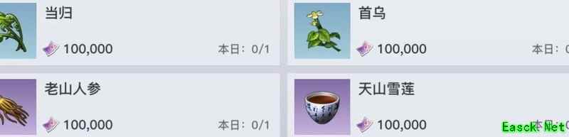 凌波馆出售的当归、首乌、老山人参及天山雪莲,泡澡后服用可在一定时间内提升气血与内力。