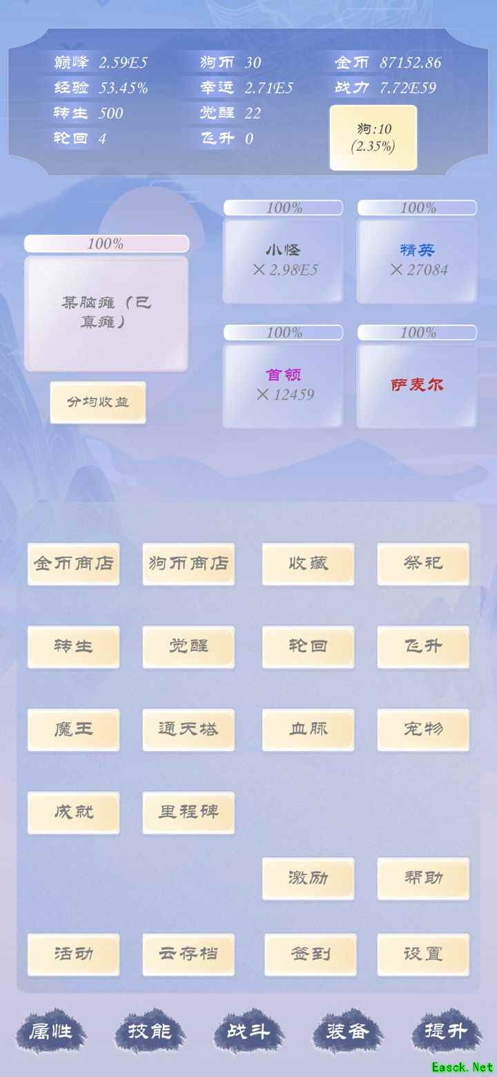 游戏流程清晰:转生、觉醒、轮回、飞升。