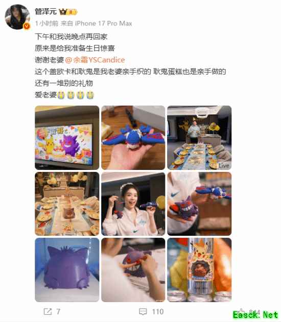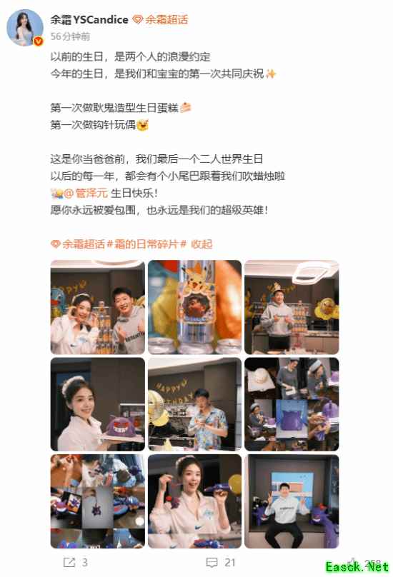管泽元今天迎来32岁生日,他在微博晒出他妻子余霜为他准备的生日惊喜:
