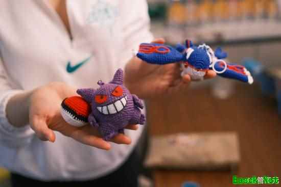 这个盖欧卡和耿鬼是我老婆亲手织的 耿鬼蛋糕也是亲手做的