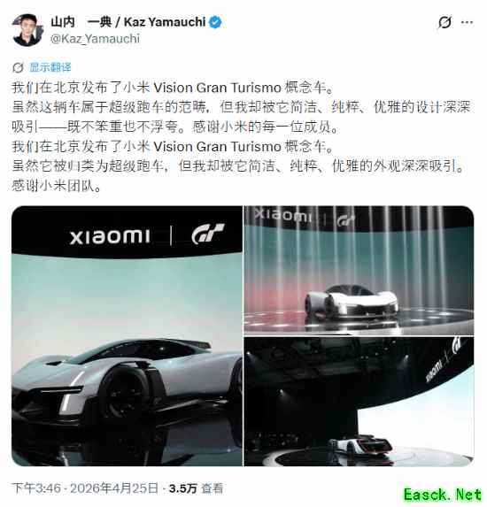 小米超帅概念超跑首曝!只为登陆PS独占大作