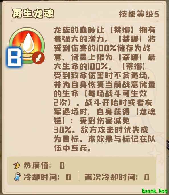 当队友受到攻击时,蒂娜有概率进行反击,该效果在遭遇群体伤害时仍可触发一次。