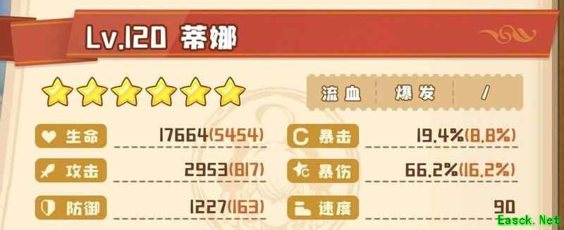 蒂娜的面板攻击与爆伤偏低,选择直伤输出效果欠佳。