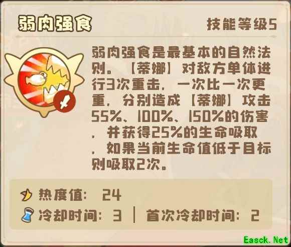 首次释放技能时,附加效果,可直接剥夺对方的完美节奏、和鸣音符、法芙娜特殊等暴击强化状态。实战中可将蒂娜对准敌方法芙娜使用,不过多数情况下对方还没来得及开技能就被一拳羊击飞了。