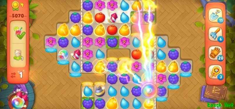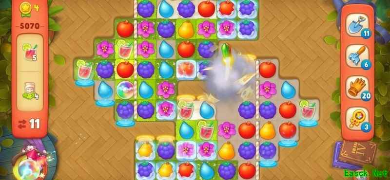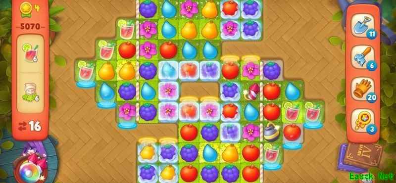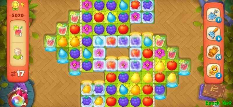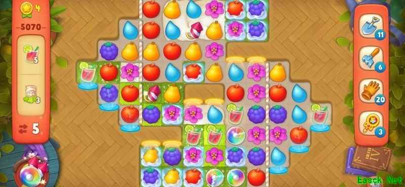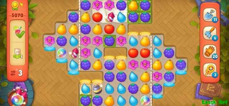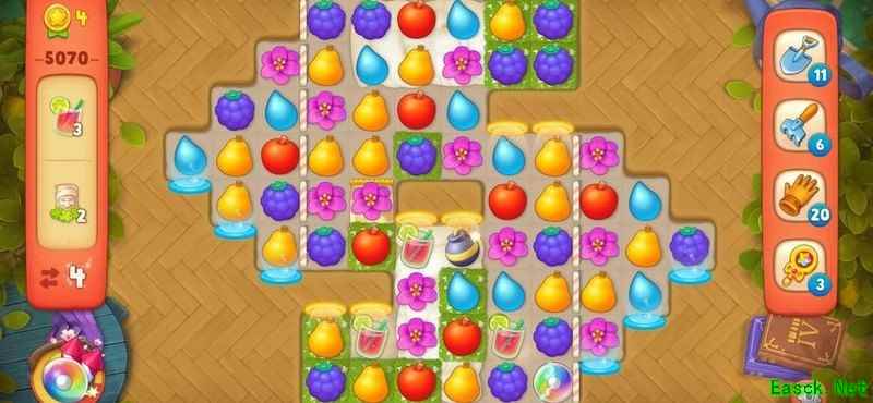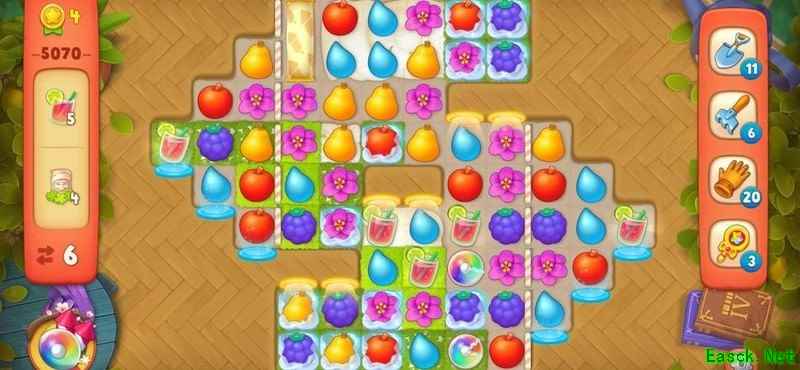 梦幻花园5070关卡步数有限,冰层密布,任务艰巨。巧用道具、集齐双彩虹炸弹,破解高难度挑战!