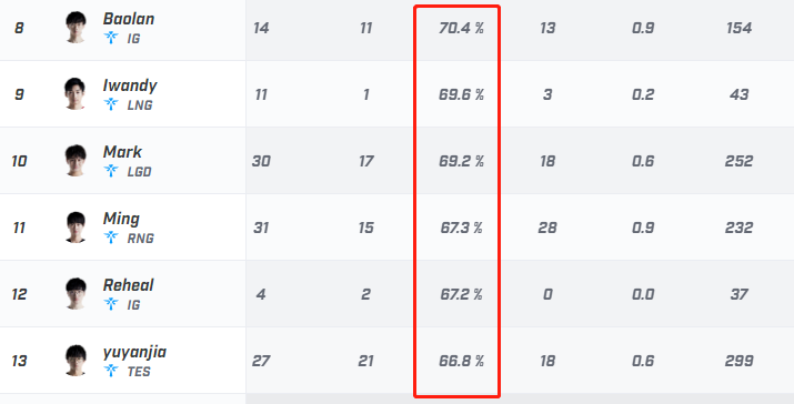 对于春季赛阶段的TES,我认为JKL的辅助需要具备三个基础能力,一是对线能力,二是保护能力,三是视野能力。预言家在前两项上做的不错,但是视野能力一般。而夏季赛阶段的TES,JKL的辅助还需具备开团能力和游走能力,因为顶尖对局要求辅助能力的全面性。且不说预言家的开团能力,因为没有具体数据来体现,但是他的游走能力着实一般,参团率66.8%排联赛第十三,而他的分均插眼1.5次排联赛第十八。我知道预言家这位老将很努力,但为了符合辅助位的全面性,他需要再努力一点。他要平衡好支援和保JKL这两个点,也要提升视野能力。