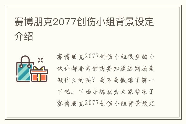 赛博朋克2077创伤小组很多的小伙伴都非常的想要知道这到底是做什么的呢?是不是很想了解一下吧...