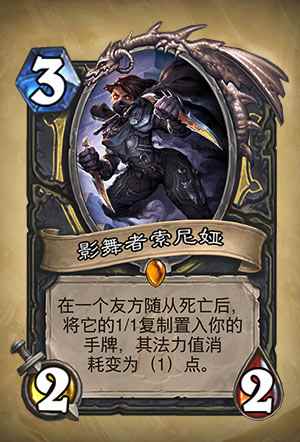 影舞者索尼娅是炉石传说狗头人版本新推出的盗贼随从卡,该卡牌属于传说品质,可以搭配各种卡组,玩...