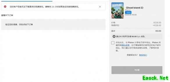 在epic游戏上可以购买自己需要的游戏,死亡岛2现在可以在epic领取,有些玩家发现领取过程中出现...