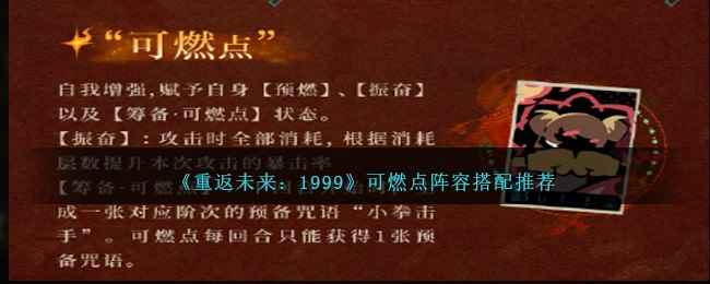 - 《重返未来:1999》可燃点阵容搭配推荐