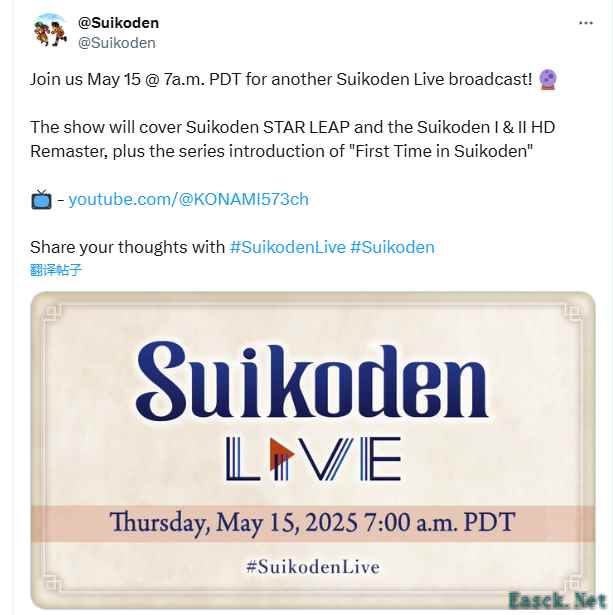 5月12日,科乐美宣布将于当天晚上10点(北京时间)举行第二场以幻想水浒传为主题的特别直播活动。...