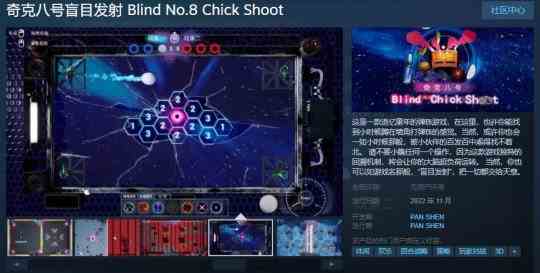 今日(10月25日),弹珠游戏《奇克八号盲目发射》Steam页面上线,游戏支持简体中文,预计于11月发...