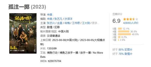 - 电影《孤注一掷》票房已突破36亿元!豆瓣评分6.9分