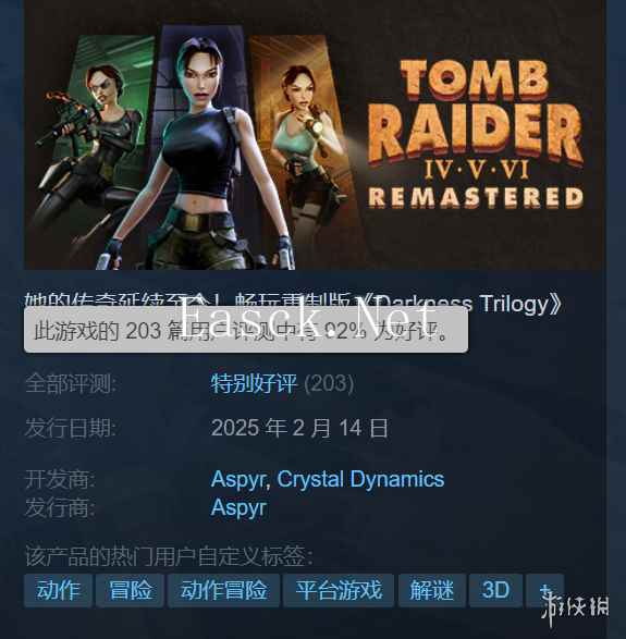- 《古墓丽影4-6复刻版》Steam特别好评:永恒的经典!