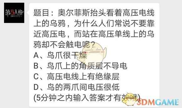 《第五人格》中每日一题是微信上的活动,这次带来也有关于科学小常识的问题,为什么乌鸦可以不被...