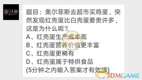 《第五人格》中每日一题是微信上的活动,这次带来的鸡蛋的问题,有点生活小常识的味道,基本上百度...