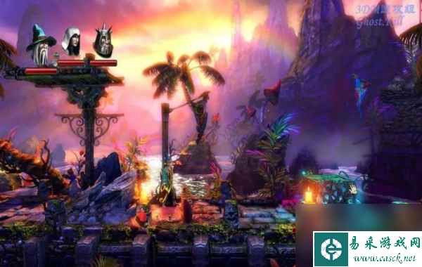 《三位一体2》详细流程攻略三:第四章:苔光沼泽:在这儿两个平台也是站上去便会掉下的,下边的粉红...